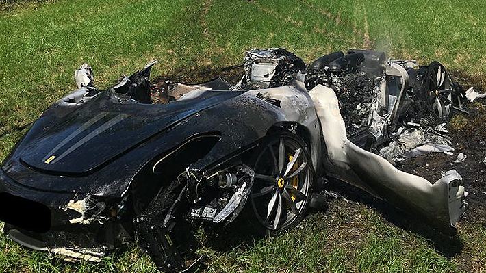 Las imágenes captadas por los funcionarios son decidoras: el Ferrari F430 Scuderia quedó completamente destruido, luego de que resultara envuelto en llamas tras el accidente, en el que no hubo otros autos involucrados.
