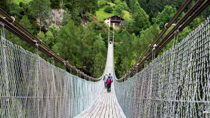 La pasarela, ubicado al sur de Suiza y sobre la cañada de Grabengufer, une los pueblos de montaña de Grächen y Zermatt, este último reconocido por ser una de las estaciones invernales más exclusivas del país europeo.
