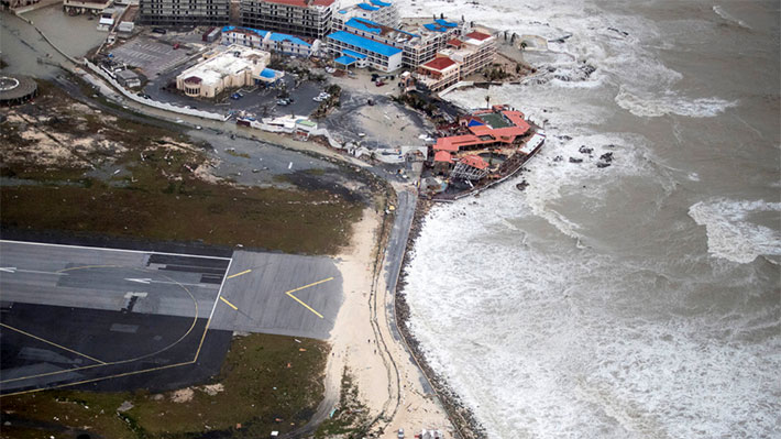 Aeropuerto Internacional Princesa Juliana de la isla San Martín, ubicada a unos 240 kilómetros de Puerto Rico, fue completamente destruido por el