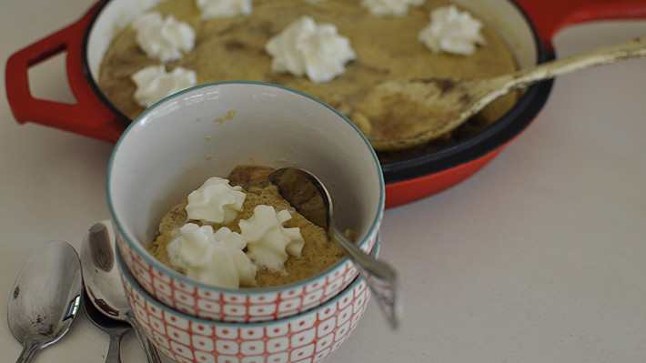 - Agregar la mezcla a una fuente previamente aceitada y llevar al horno por 15 minutos. Sacar y dejar enfriar, para luego meterla al refrigerador por una hora.