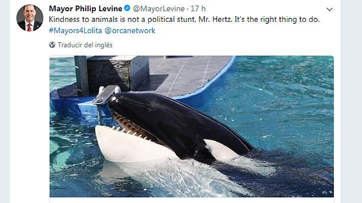 "El trato correcto a los animales no es un truco político", aseguró hoy Levine en su cuenta de Twitter, donde hizo un llamado al administrador del Miami Seaquarium, Andrew Hertz, a hacer "lo correcto".