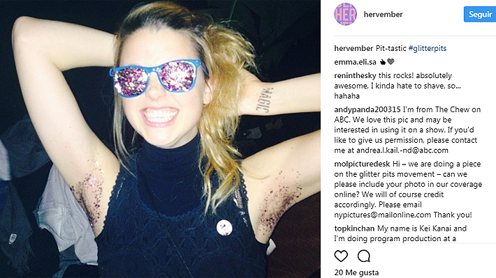 Pero como el uso de la brillantina no podía quedarse solo ahí, ahora la nueva moda que arrasa en las redes sociales son las "glitter armpits", que traducido al español sería algo así como "axilas brillantes".