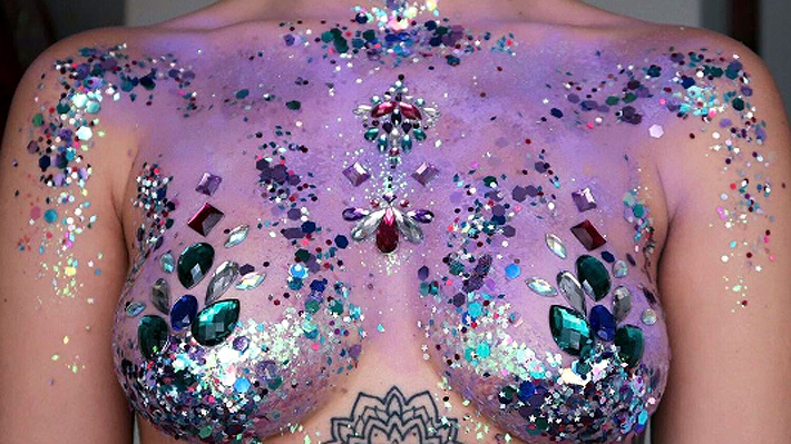 Un mes después, el festival de música y artes Coachella fue el escenario ideal para estrenar los "glitter boobs" o, en otras palabras, el busto cubierto de pintura y piedras brillantes.