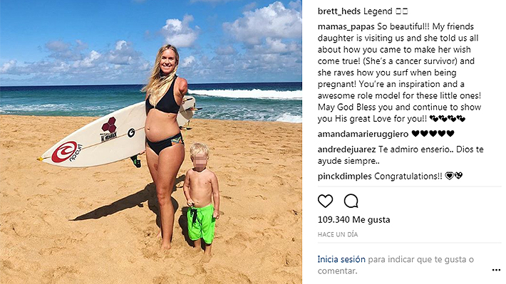 Y tal es su pasión por el mar y el deporte que practica, que hoy con seis meses de embarazo -específicamente 24 semanas, según reveló hace unos días en su cuenta de Instagram-, no duda en subirse a su tabla y montar las olas de Hawaii.