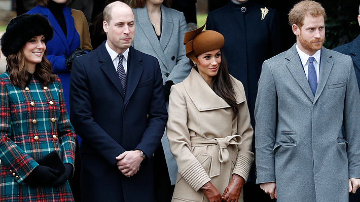 El momento fue captado por los varios fotógrafos que se apostaron en el lugar para inmortalizar la primera imagen de William, Kate, Harry y Meghan juntos.