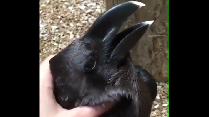 ave o un conejo. La grabación de menos de un minuto, muestra la mano de una persona acariciando a un animal negro que para algunos parece un conejo con sus orejas hacia atrás, y para otros un ave con su pico medio abierto.