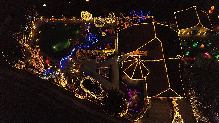 un millón de luces y más de 140 muñecos inflables con temática navideña, sobre todo diferentes versiones del Viejito Pascuero, renos y pesebres de Navidad.