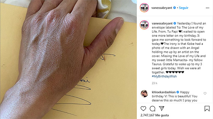 "Esperé para abrir una carta más en mi cumpleaños. Me dio algo que esperar para hoy", explicó la viuda de la fallecida estrella de la NBA.