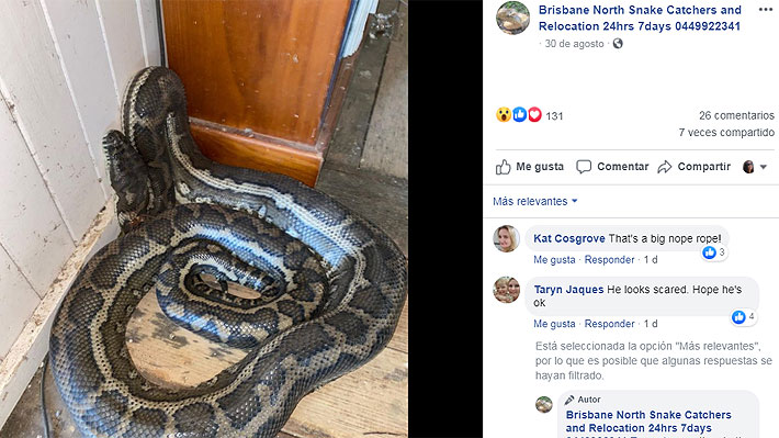 Crédito: Brisbane North Snake Catchers and Relocation / Captura Facebook."