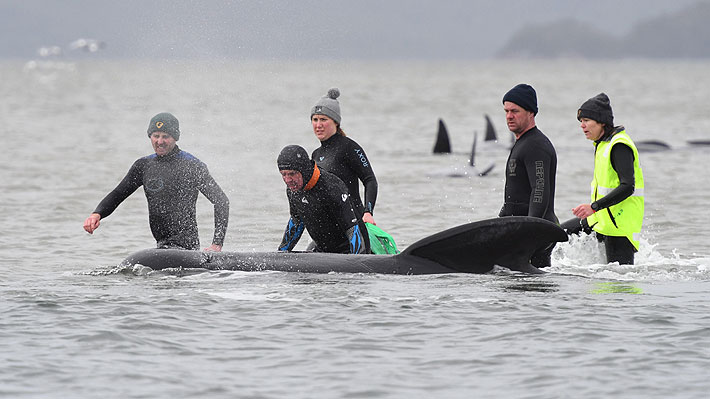 No es la primera vez que varias ballenas quedan varadas en las playas de Tasmania, especialmente en la bahía de Macquarie, donde