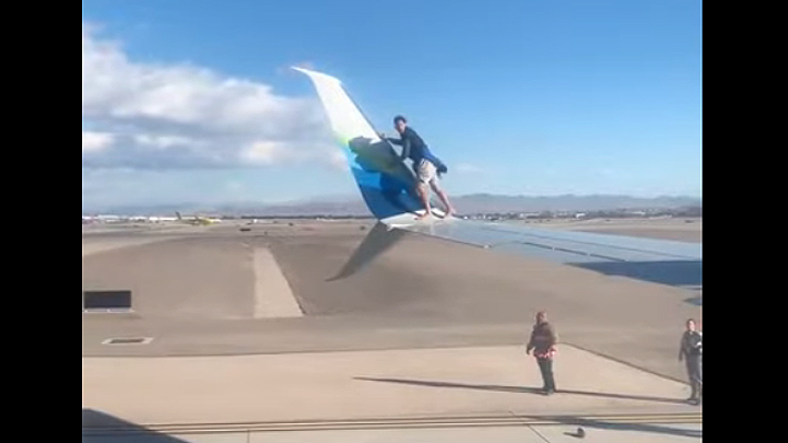 subió al ala y comenzó a caminar por ella. Posteriormente, cuando los agentes de seguridad se acercaron al lugar, el sujeto