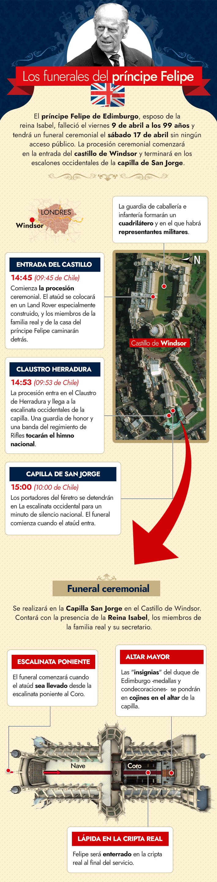 El sábado se realizará inicialmente una procesión antes de la ceremonia final en la Capilla de San Jorge, donde Felipe será enterrado en la cripta real.