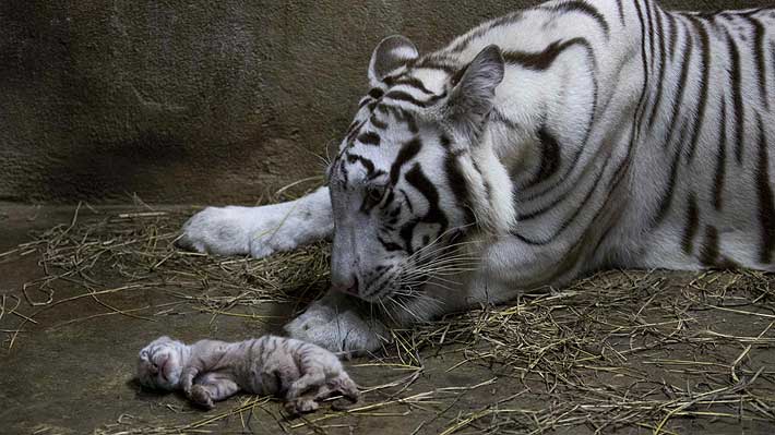 En el caso de los tres tigres blancos que acaban de nacer, sus padres también lo son: Halima, de tres años, y su pareja Osmán, de 4 años.