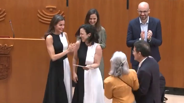En ese instante se produjo un momento jocoso ya que una de las galardonas a quienes Letizia entregó el premio llevaba puesto exactamente el mismo vestido que ella.