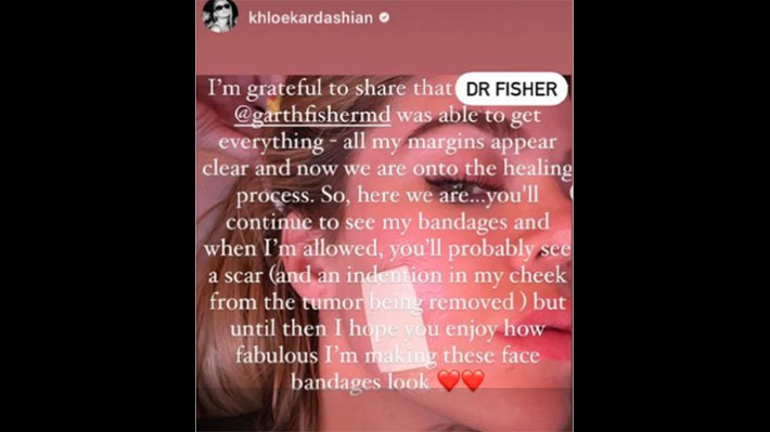 La influencer Khloe Kardashian (38 años) reveló que recientemente debió someterse a una cirugía en que le extirparon un tumor del rostro.