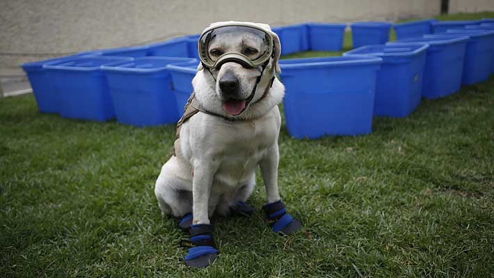 Frida, una labradora retriever color miel rescatista que se hizo popular en México en los días posteriores al terremoto del 19 de septiembre de 2017 por su