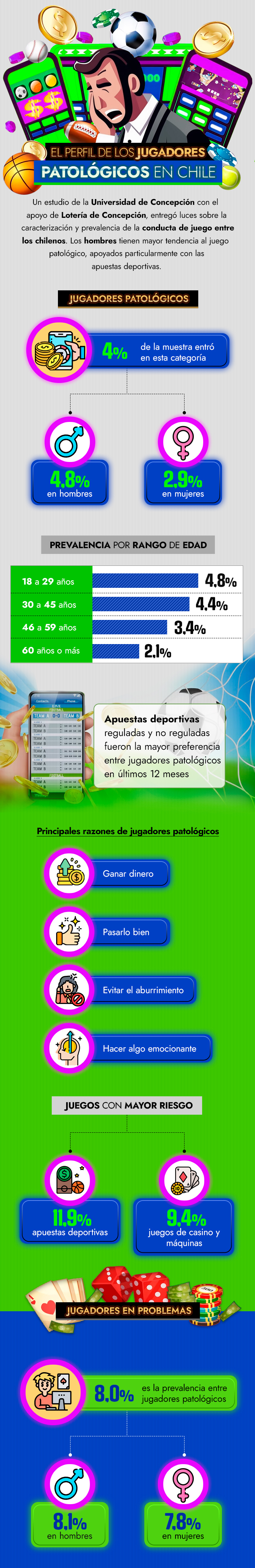 Jugadores patológicos en Chile: Prevalencia es mayor en hombres y apuestas deportivas presentan más riesgo