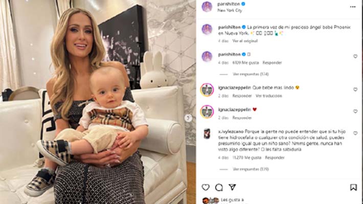 se manifestó Hilton. "Hay algunas personas enfermas en este mundo", comentó sobre las imágenes y los comentarios que desató el aspecto de su hijo. De inmediato, aclaró el estado de salud de Phoenix