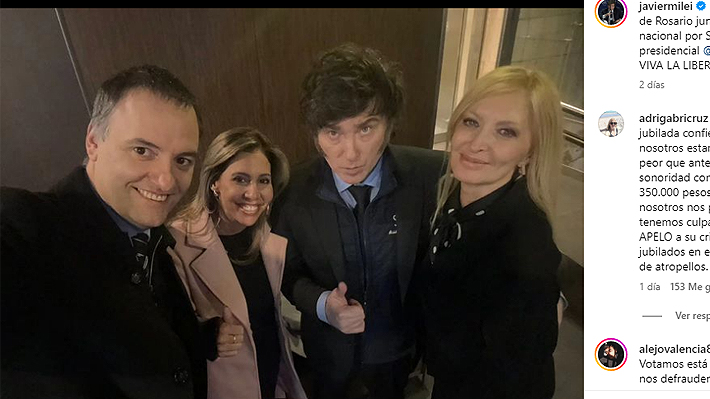 junto a mi novia @yuyitogonzalezk", escribió Milei junto a la imagen en la que también aparecen la diputada por Santa Fe Romina Diez y el vocero presidencial, Manuel Adorni.