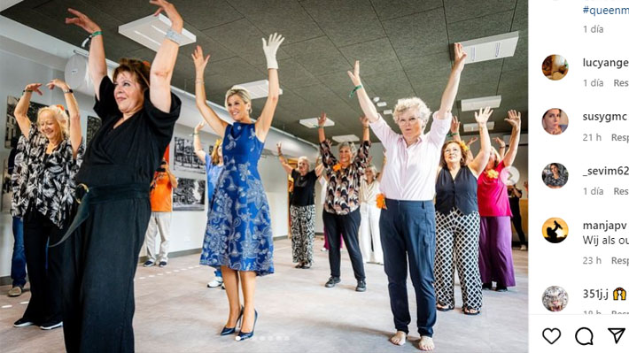 reina Máxima mientras bailaba bachata en plena actividad real. Además de sorprender a todos con su ritmo,