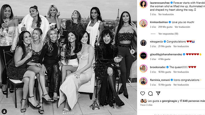 Sánchez compartió fotos de la celebración en su cuenta de Instagram. En un primer post publicó siete imágenes, junto al mensaje: "La eternidad comienza con la amistad, rodeada de mujeres que me han levantado, iluminado mi camino en tiempos oscuros y moldeado mi corazón a lo largo del camino".