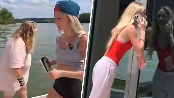 se puede escuchar a la mujer gritando que no sabe nadar y a la influencer diciendo "se está ahogando".