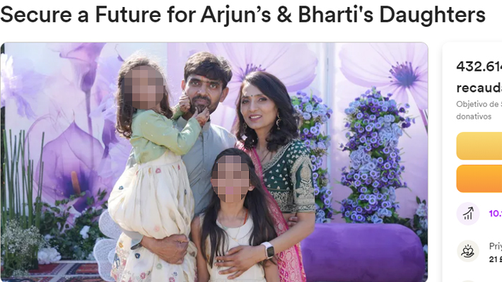 familiares y amigos cercanos lanzaron una campaña para recaudar fondos para las hijas de Arjun y Bharti, con el fin de brindarles "seguridad, estabilidad y amor en los próximos años".