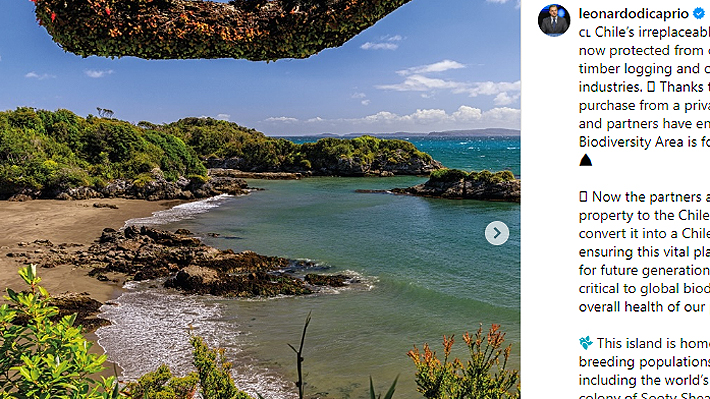Leonardo DiCaprio se refirió a la isla Guafo ubicada al sur de Chiloé, que recientemente fue adquirida por la ONG Re:wild -de la que el intérprete es cofundador- para su conservación.