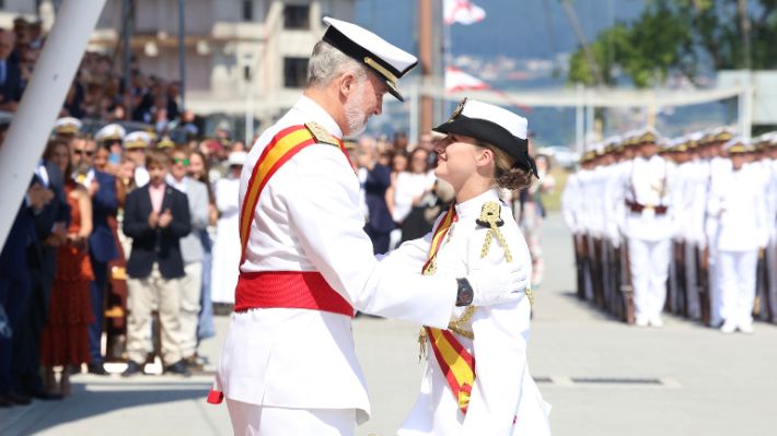 Once meses después de su ingreso en la Escuela Naval de Marín (España), la heredera al trono español, Leonor de Borbón, recibió este miércoles la Gran Cruz al Mérito Naval de manos su padre, el rey Felipe VI, como cierre a su formación naval.