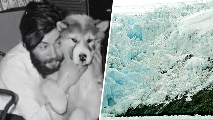 A la izquierda, Dennis Bell con uno de los perros que tiró de los trineos en los que junto a su equipo emprendieron la expedición en la que murió. A la derecha, un glaciar en la isla 25 de Mayo (o Rey Jorge).