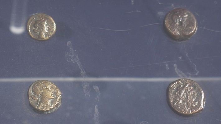 un barco mercante, anclas de piedra y una grúa portuaria en el sitio de un muelle de 125 metros, que se utilizó como puerto para embarcaciones pequeñas durante las épocas romana y bizantina.