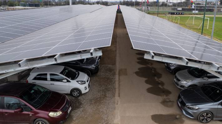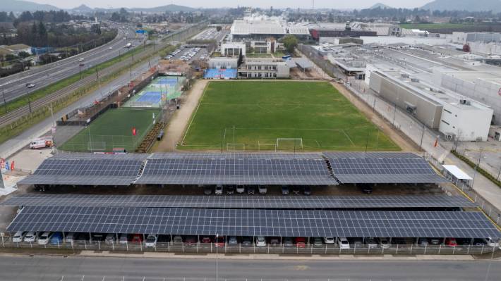 Los paneles solares cuentan con tecnología fotovoltaica bifacial, lo que les permite extraer energía solar de forma directa como de rebote del mismo suelo. Para los trabajadores de Carozzi, esta iniciativa les permitirá protegerse del calor y el frío tanto en los estacionamientos como en los paraderos techados, donde esperan a los más de 150 buses que llegan para su traslado. En total, 4.500 personas van hacia la planta industrial de Nos todos los días.