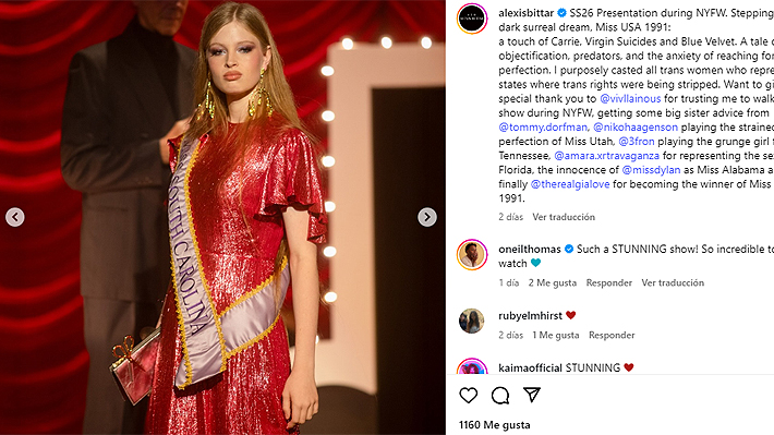 Vivian Jenna Wilson con el vestido que lució en el desfile de la Semana de la Moda de Nueva York. Crédito: Alexis Bittar / Instagram (captura).Cabe señalar que