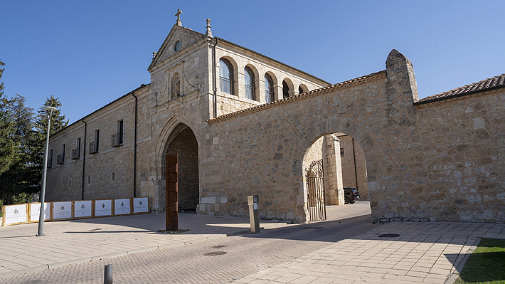 Vista de la entrada al hotel ubicado en el Monasterio de Valbuena, donde en la noche del viernes se celebrará una fiesta previa al matrimonio.