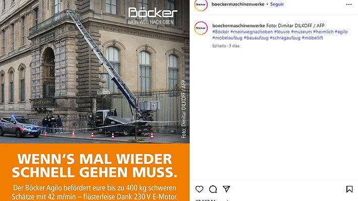 Böcker Maquinarias, fabricante del montacargas usado el domingo pasado por el grupo de ladrones que perpetró un millonario robo en el Museo del Louvre en París,
