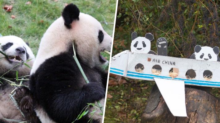 Se ha previsto que las dos cajas vayan en un espacio climatizado a 20 grados centígrados durante todo el trayecto y para alimentar a los animales se han cargado 180 kilos de hojas de bambú.