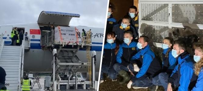 Un avión de China Airlines se encarga del vuelo de una docena de horas hasta Chengdu, en la provincia de Sichuan, con los dos pandas, Huan Huan y Yuan Zi, en cajas especialmente concebidas para este viaje, en el que van acompañados por dos expertos chinos, un cuidador y un veterinario, y un segundo veterinario francés.