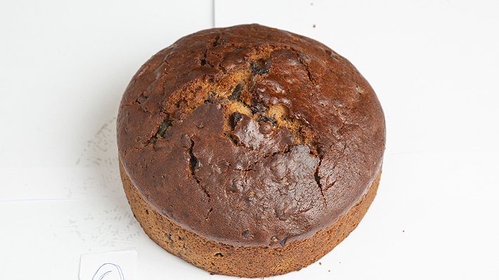 Receta familiar originalmente concebida como un queque inglés. Los expertos elogiaron la abundancia de frutos y su textura no seca. Sin embargo, advirtieron que