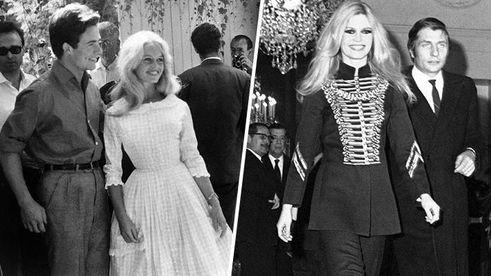 Bardot el día de su matrimonio con Jacques Charrier (izquierda) y en la cena de gala en el Palacio del Elíseo en 1967. Créditos: AFP / AP.