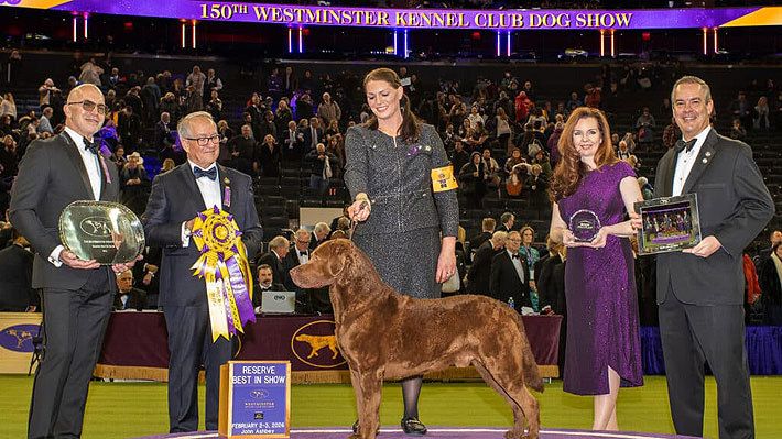 Penny recibiendo el premio "Mejor Show" del concurso canino Westminster Kennel Club Dog Show