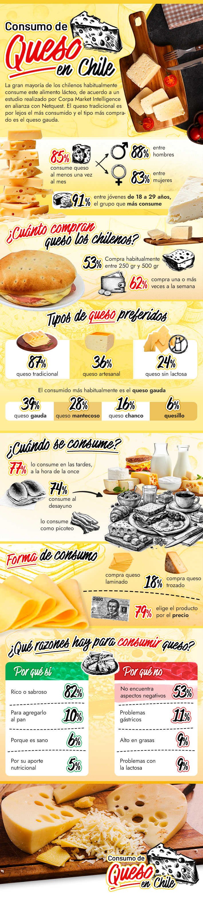 Consumo de queso en Chile: 85% lo come y 6 de cada 10 chilenos lo compra al menos una vez por semana