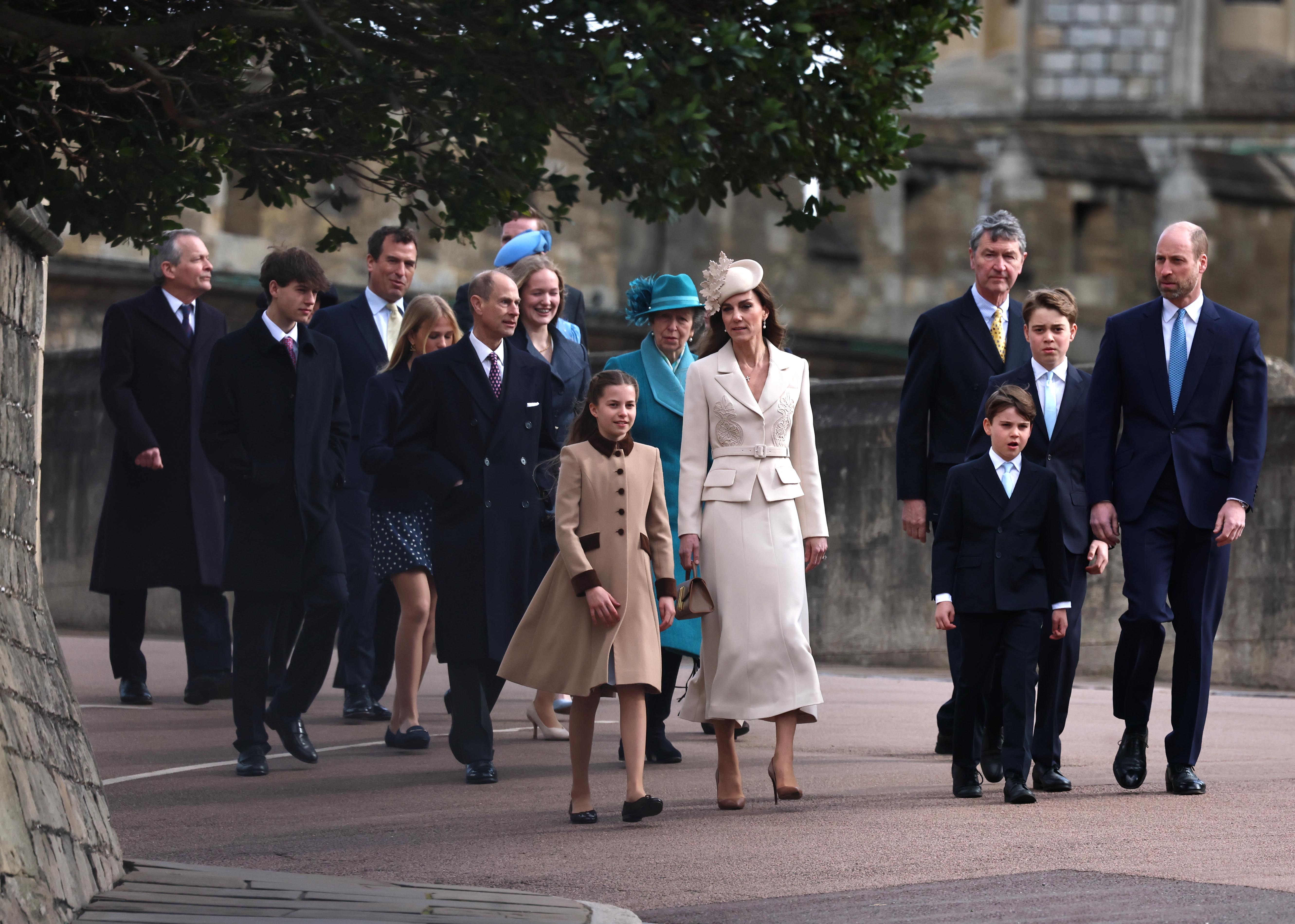 El príncipe William, la princesa Ana y el príncipe Eduardo caminan junto a sus respectivas familias. Crédito: EFE.
