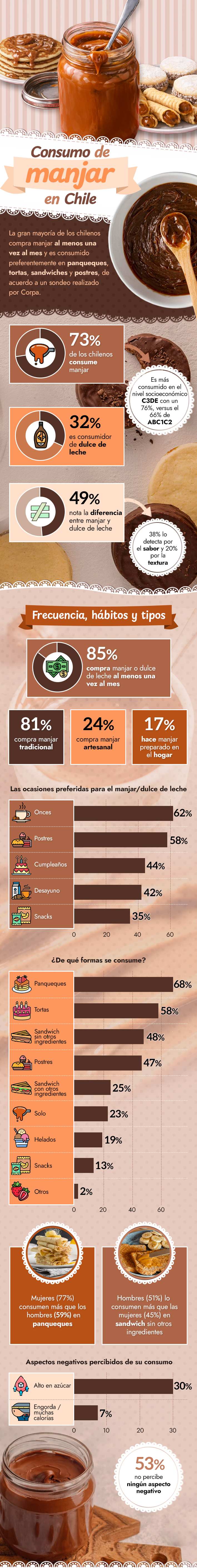 La debilidad de los chilenos por el manjar: El 73% lo consume y la mayoría lo prefiere en panqueques o tortas
