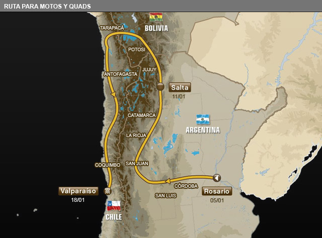 La largada se dará el 5 de enero desde la ciudad de Rosario, en Argentina, y la prueba finalizará el 18 de ese mes en Valparaíso (en la versión anterior fue en Santiago).