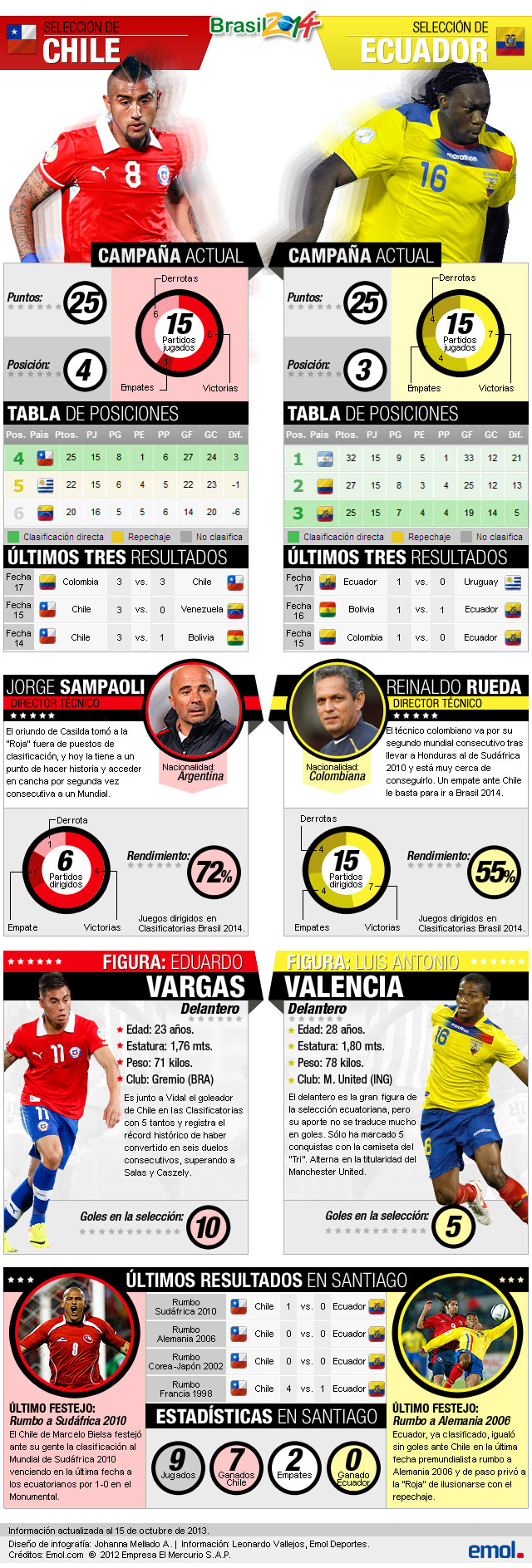 Los números que marcan el cara a cara entre Chile y Ecuador