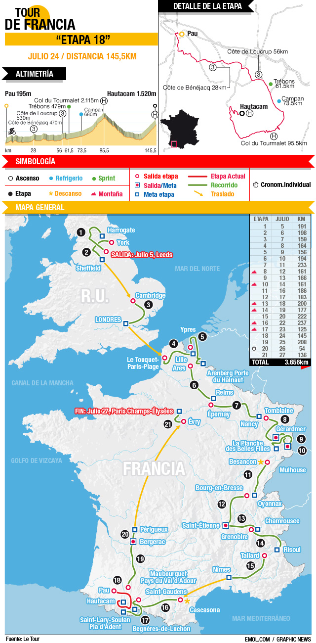 SAINT LARY.- El polaco Rafal Majka logró hoy en la cima pirenaica de Pla d'Adet su segunda victoria en este Tour de Francia, tras haber ganado en la alpina de Risoul tres jornadas antes, mientras que el italiano Vincenzo Nibali afianzó su liderato y el español Alejandro Valverde salvó la segunda plaza.