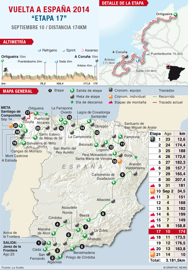 La Vuelta a España disfrutará mañana de la segunda jornada de descanso antes de adentrarse en Galicia.