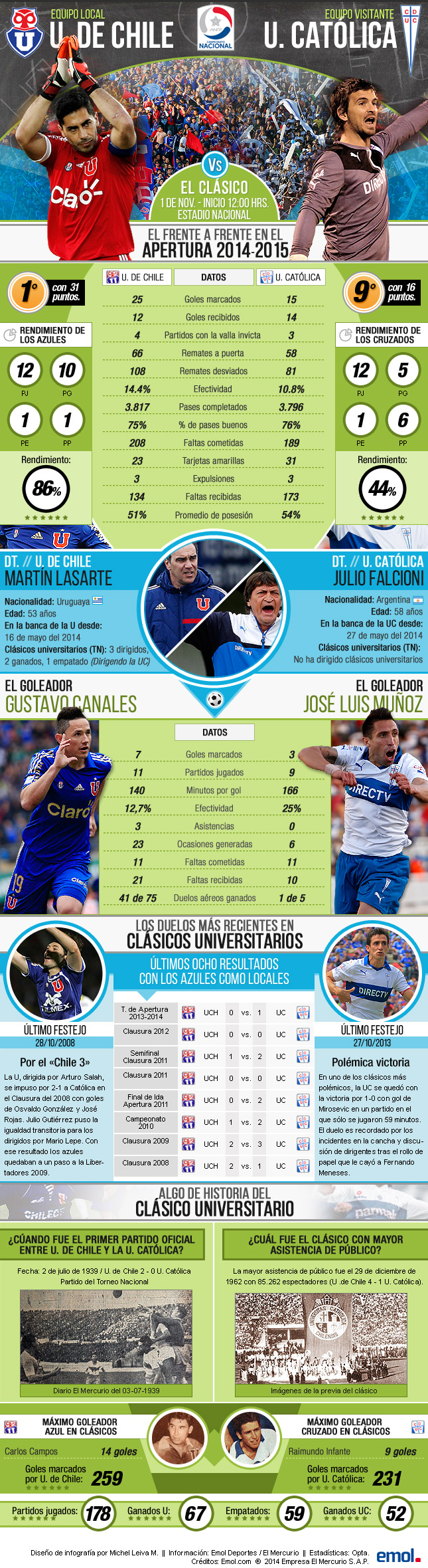 Azules y cruzados disputarán en el Estadio Nacional la edición 179 de este tradicional choque. Revise las estadísticas.