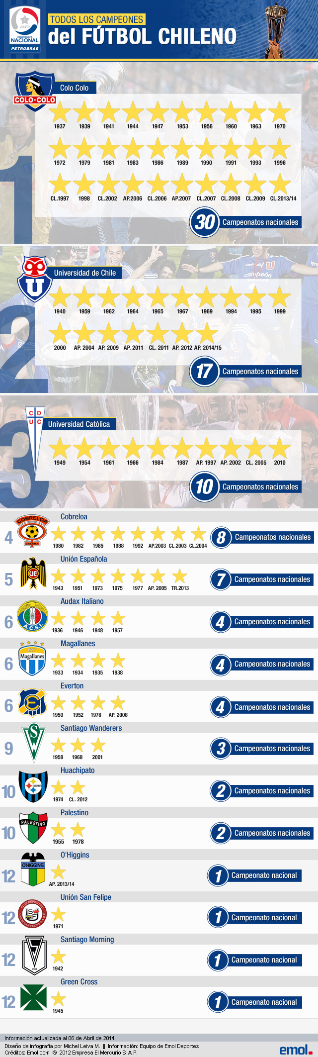 Revise a todos los campeones del fútbol chileno tras el nuevo título obtenido de la U