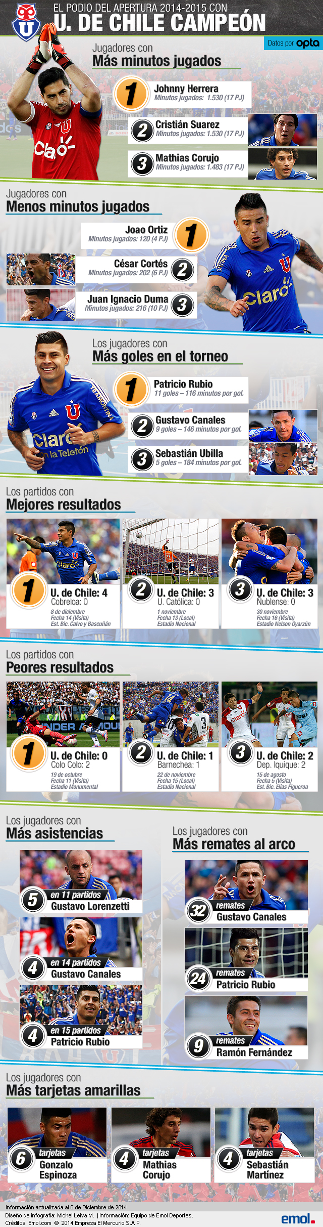 Los que más y menos jugaron, goleadores, mejores partidos y más datos que registró el monarca del fútbol chileno en el Apertura.